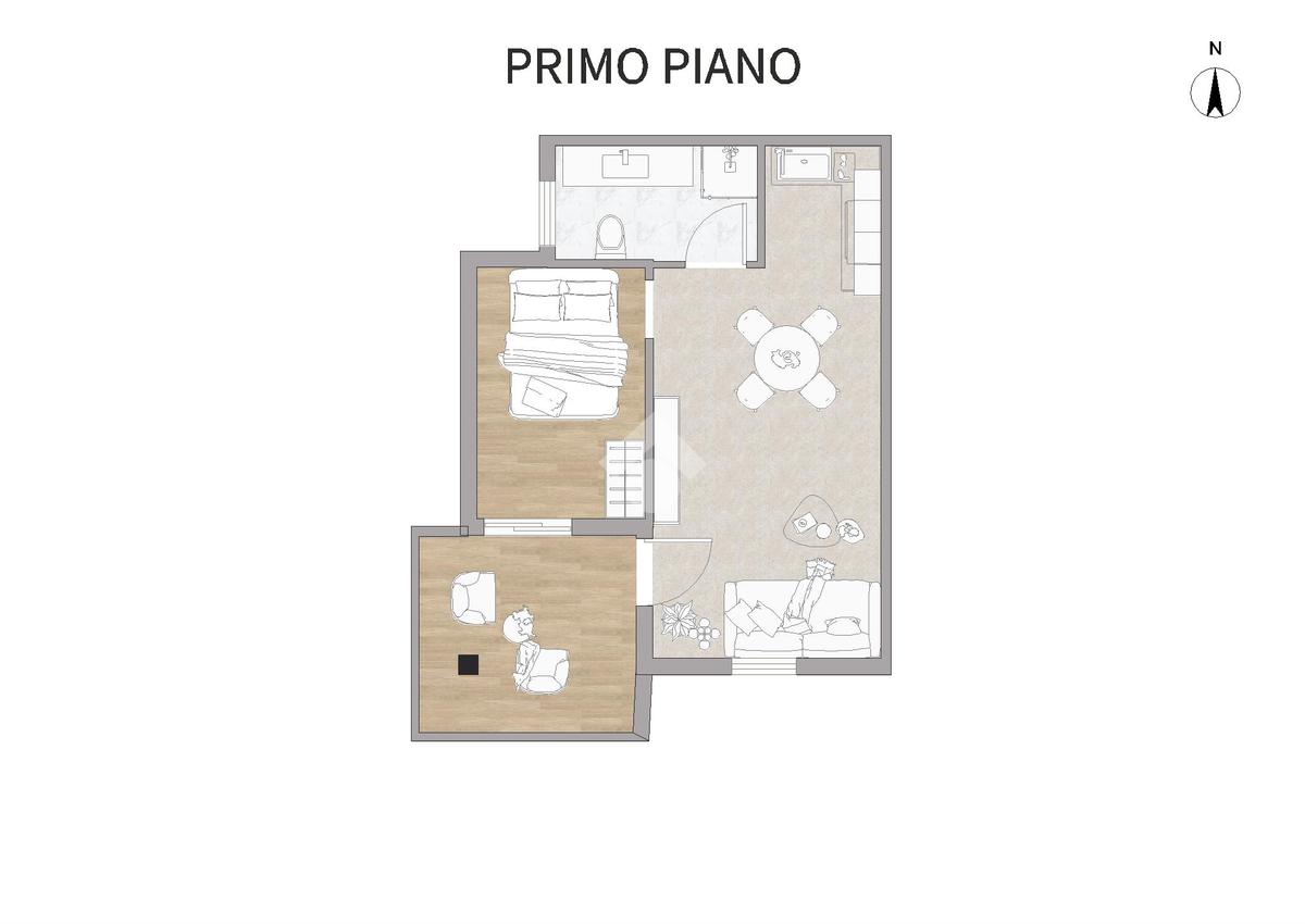 L'appartamento è composto da due locali ben distribuiti: una luminosa camera da letto, la cucina - soggiorno, luminosa e spaziosa, e un bagno ben rifinito. Un ampio terrazzo completa la proprietà, perfetto per momenti di relax all'aperto.