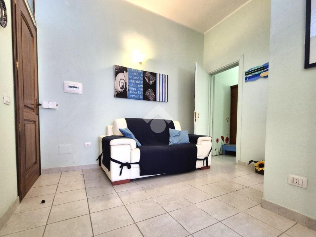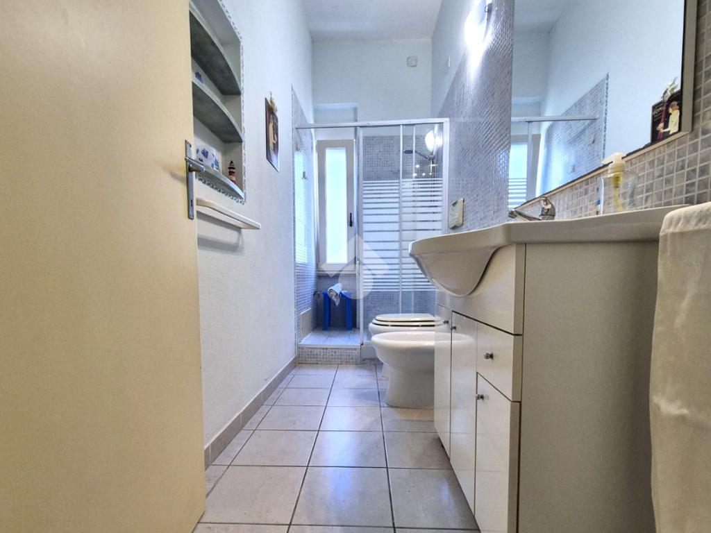 Completano l'immobile una comoda cantina con zona lavanderia, e la presenza di un terrazzo panoramico con vista mare in comune con gli altri due appartamenti presenti nello stabile.