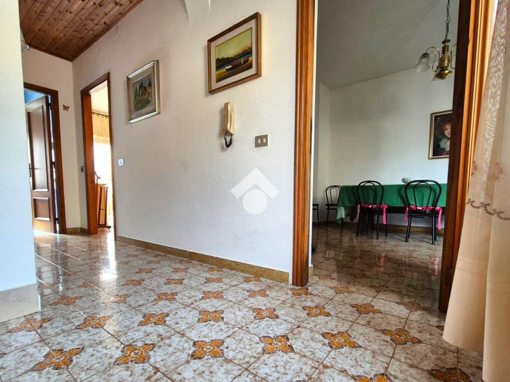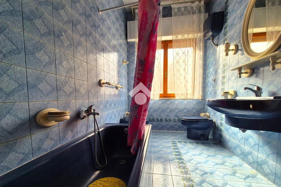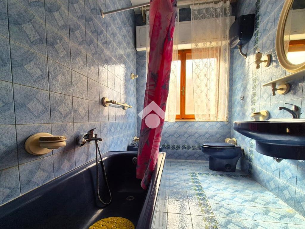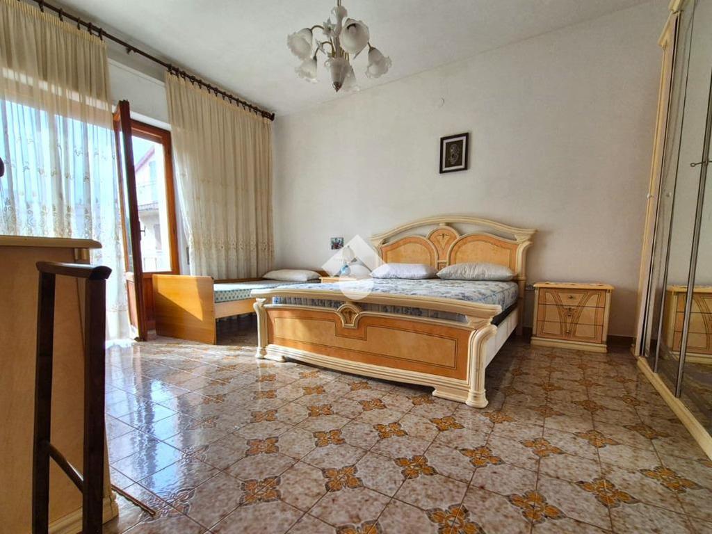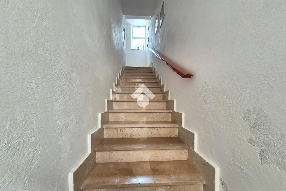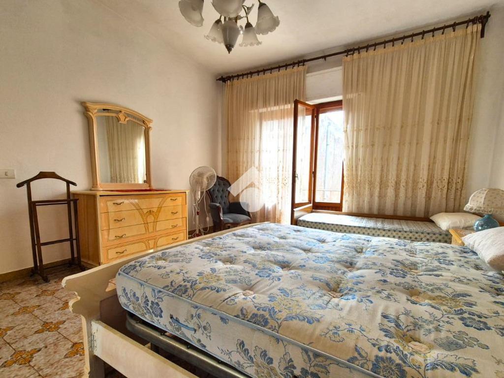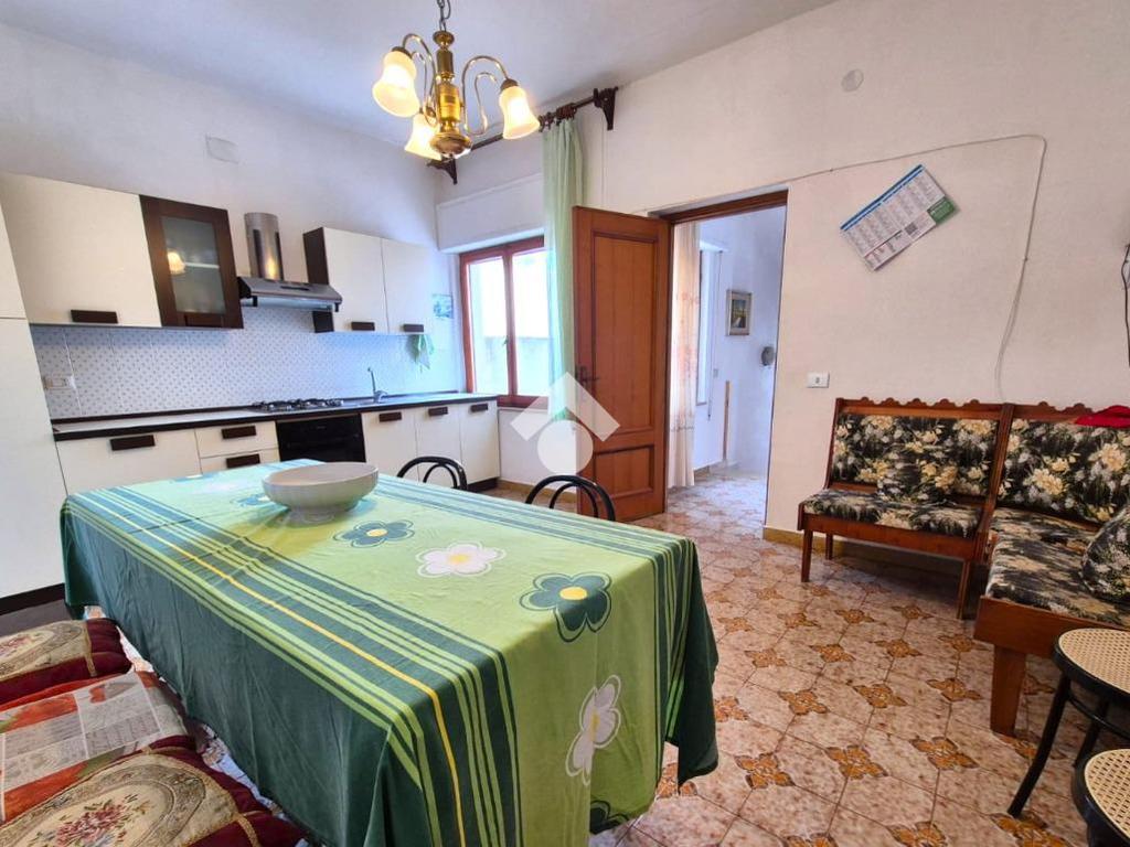 Una volta superato il portoncino d'ingresso, troviamo la comoda scala che ci conduce al primo e principale piano della casa. Frontalmente troviamo la zona giorno composta da sala da pranzo con angolo cottura, molto luminosa grazie alla grande finestra. Dallo spazioso disimpegno accediamo alla zona notte, composta da due camere da letto matrimoniali e un bagno padronale con vasca da bagno. Entrambe le camere da letto affacciano, tramite porta finestra, al balcone su strada da cui godiamo di un primo scorcio sul lungomare situato in fondo alla via.