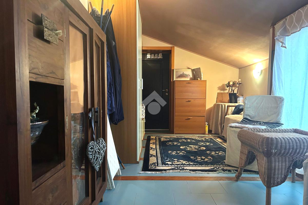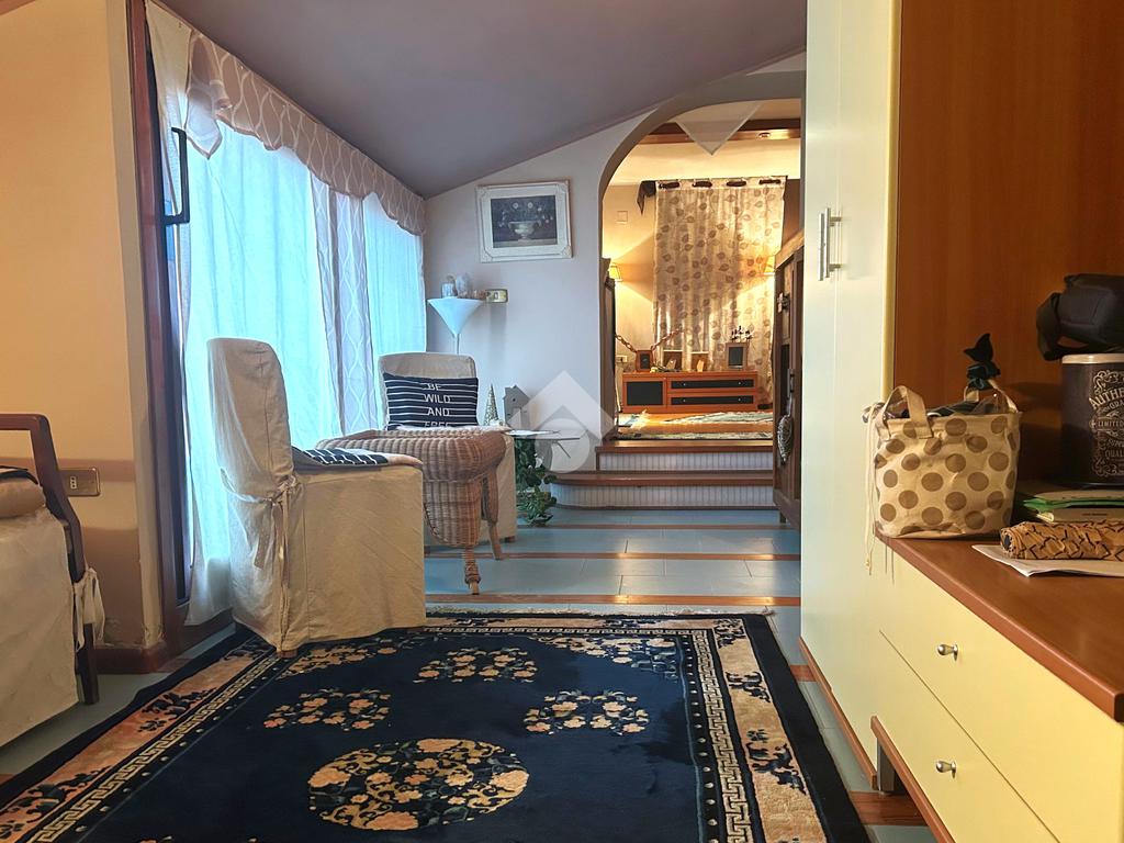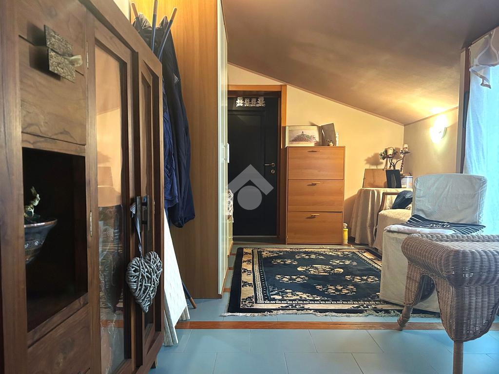 L’immobile, rifinito con parquet, si sviluppa interamente al secondo e ultimo piano dell'edificio con annesso piano mansardato. L’ingresso conduce a un grazioso terrazzino, ideale per momenti di relax all’aperto. La zona giorno, luminosa e accogliente, è riscaldata da un caminetto.