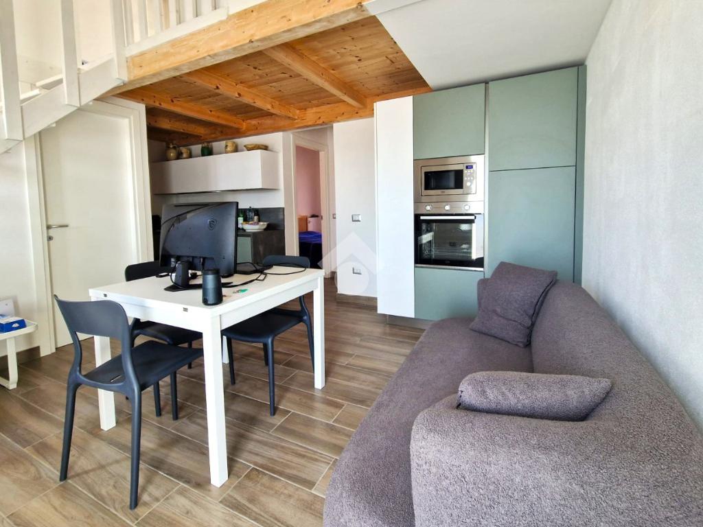 L'appartamento, recentemente ristrutturato, pronto all'uso sin da subito, si sviluppa interamente al primo piano, ed è impreziosito da soppalchi e travi in legno a vista e particolari perfettamente rifiniti.