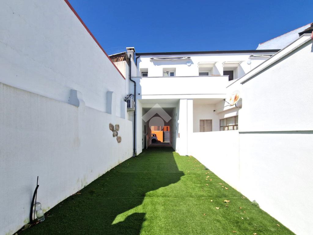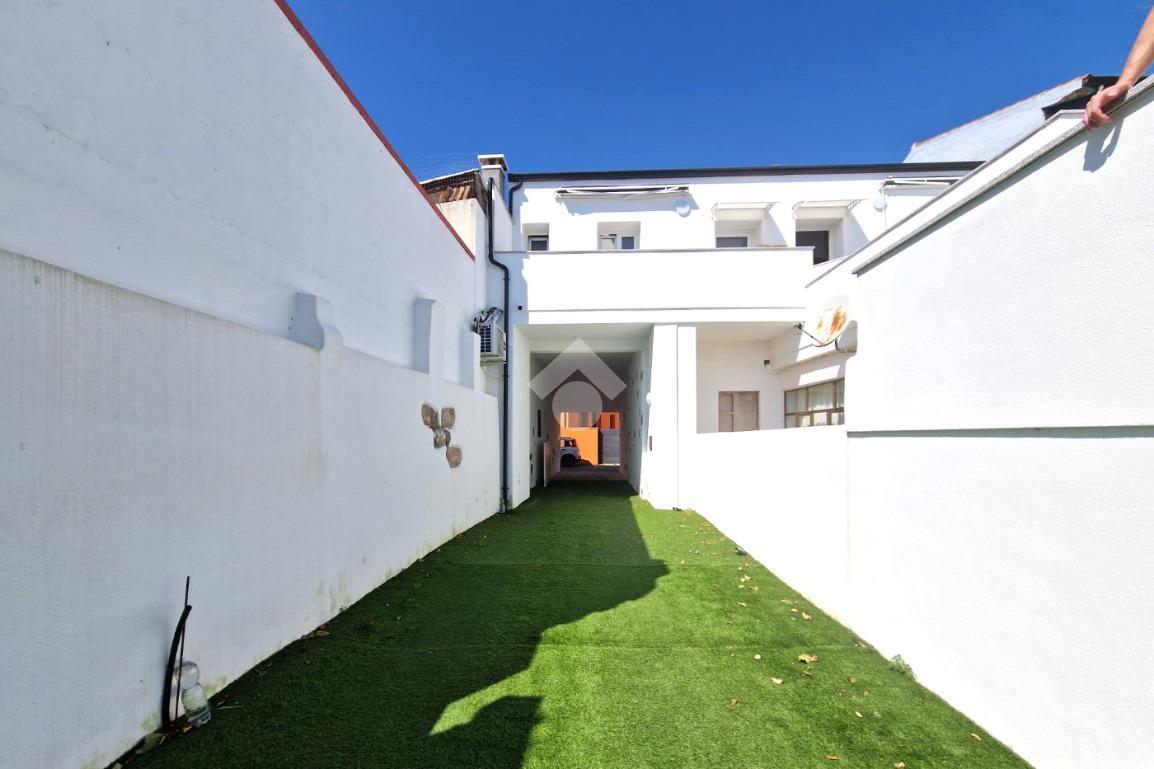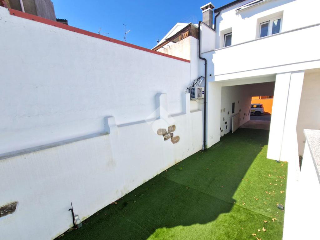 Attraverso il cancello d'ingresso carrabile si accede al cortile retrostante, dove é possibile posteggiare l'auto e creare un'area cortilizia condivisa. Una scala comune conduce al passaggio e veranda privata, pratica e funzionale, completa di lavandino, e predisposizione per lavatrice e asciugatrice, in modo da non dover rubare spazio all'interno dell'immobile. La veranda è impreziosita da una tenda da sole avvolgibile, l'ideale per schermarsi dal sole nelle ore più calde.