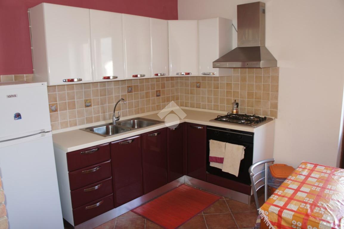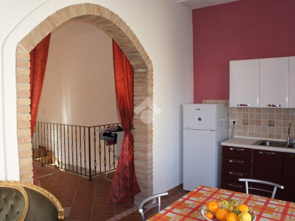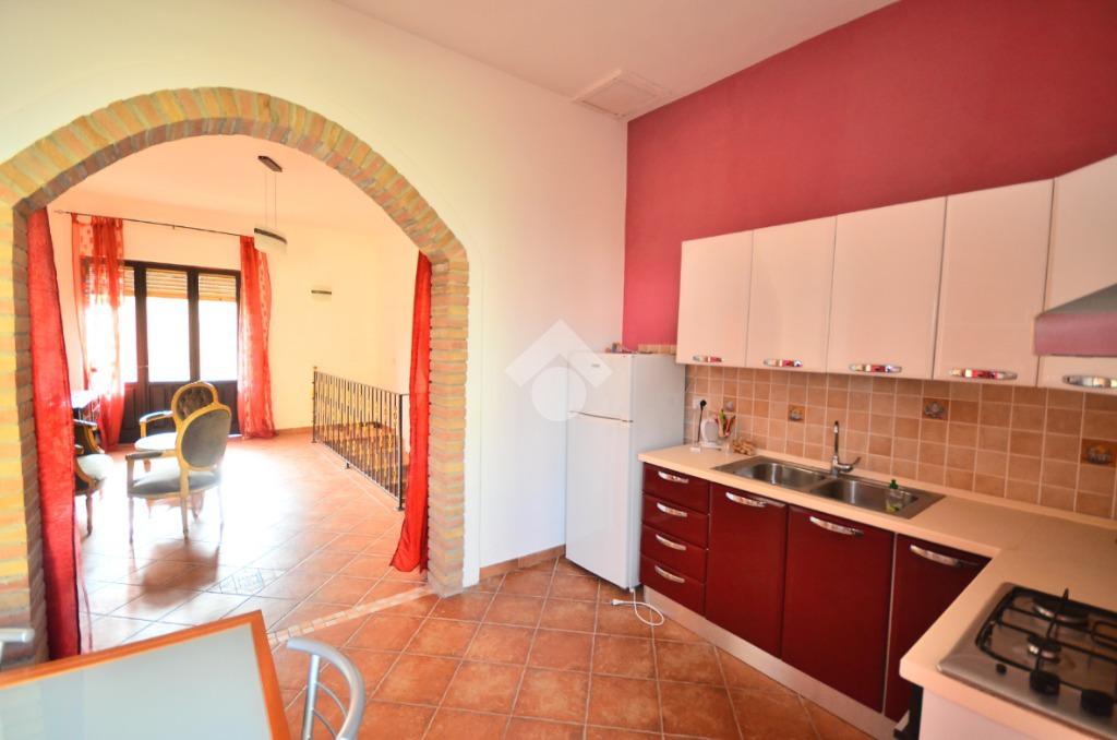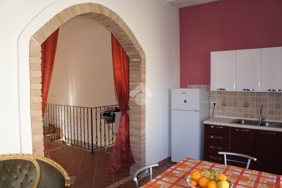 La cucina, ampia e funzionale, è impreziosita da un caratteristico arco in pietra, un dettaglio che dona eleganza e personalità all’ambiente, ideale per vivere la quotidianità con stile e comfort.