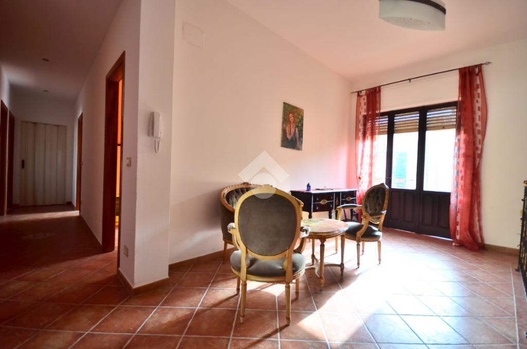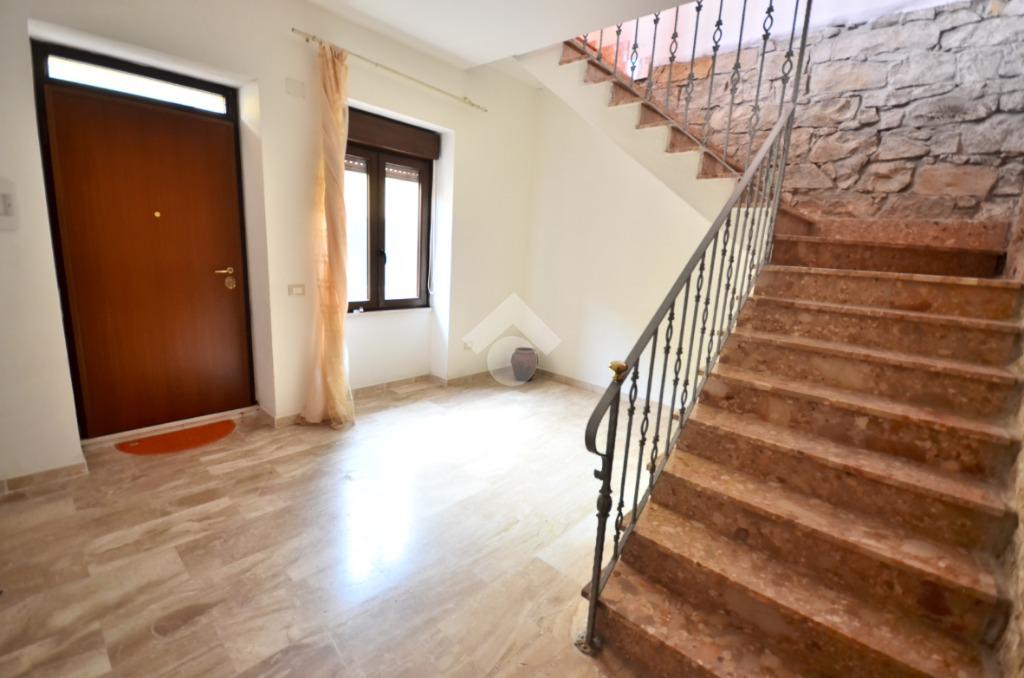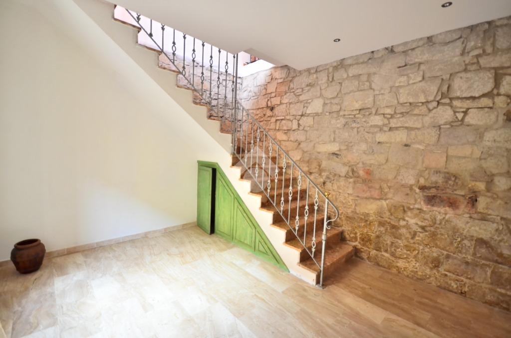 Una scala interna conduce al piano superiore, nel quale si sviluppano tutti gli ambienti della casa, dove si apre la zona giorno, luminosa e ben articolata. Il soggiorno e la cucina si fondono in un unico ambiente open space, reso ancora più arioso dalla presenza di due balconi: uno con affaccio sulla via principale, l’altro più riservato, rivolto verso il retro della casa.