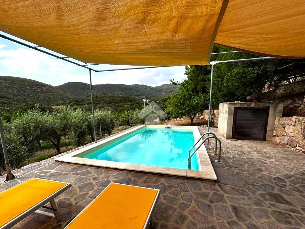 Villa indipendente con terreno e vista mozzafiato sul mare a Sant'Antioco, immersa nella quiete della natura mediterranea, sorge questa elegante villa singola circondata da un ettaro di terreno, suddiviso tra uliveto e macchia spontanea. Un rifugio ideale per chi cerca spazio, comfort e privacy, senza rinunciare alla bellezza del paesaggio.
