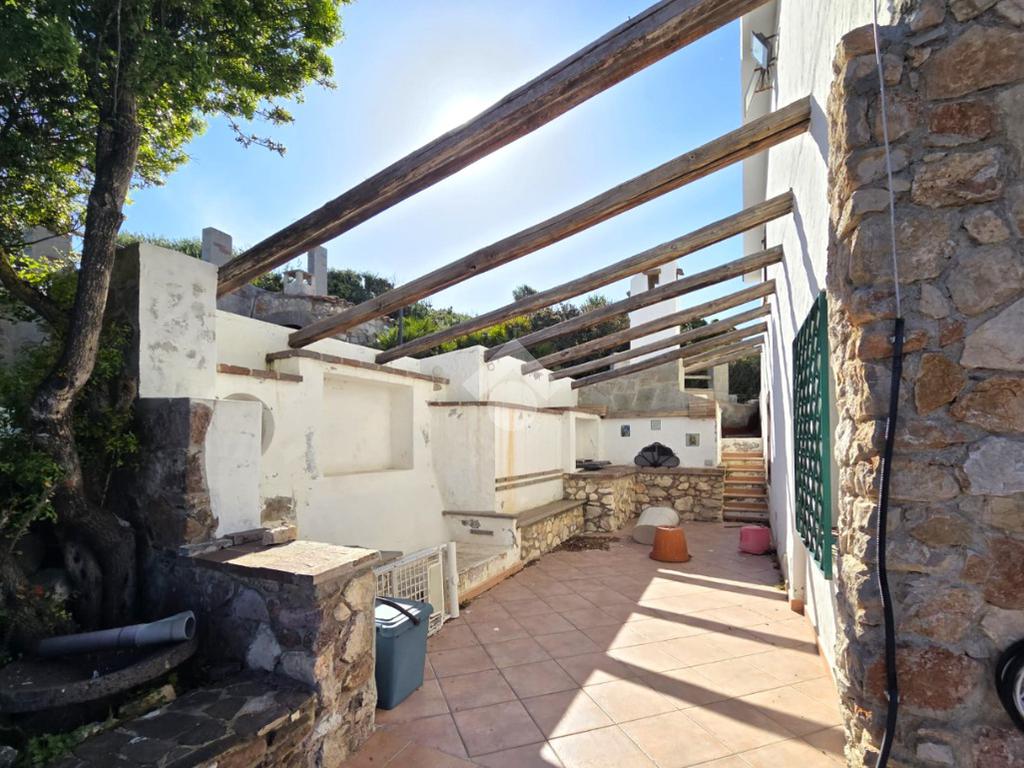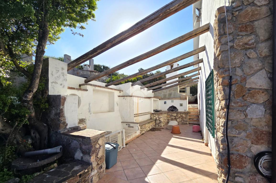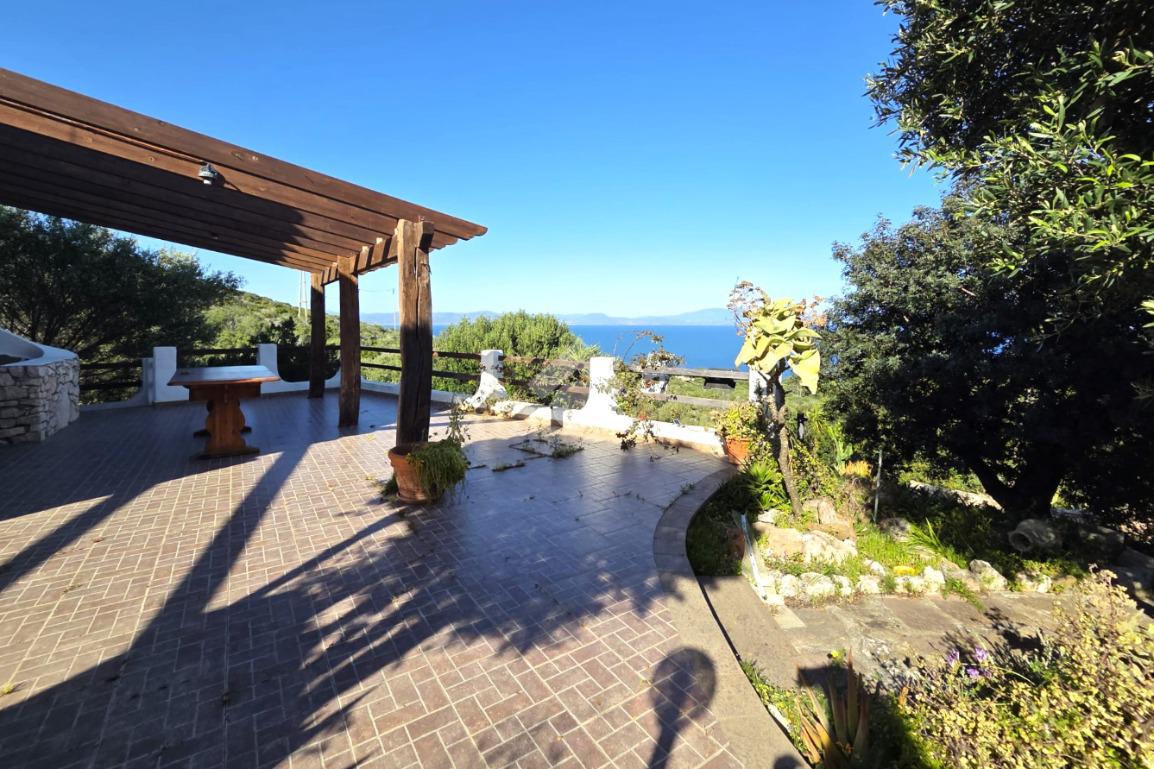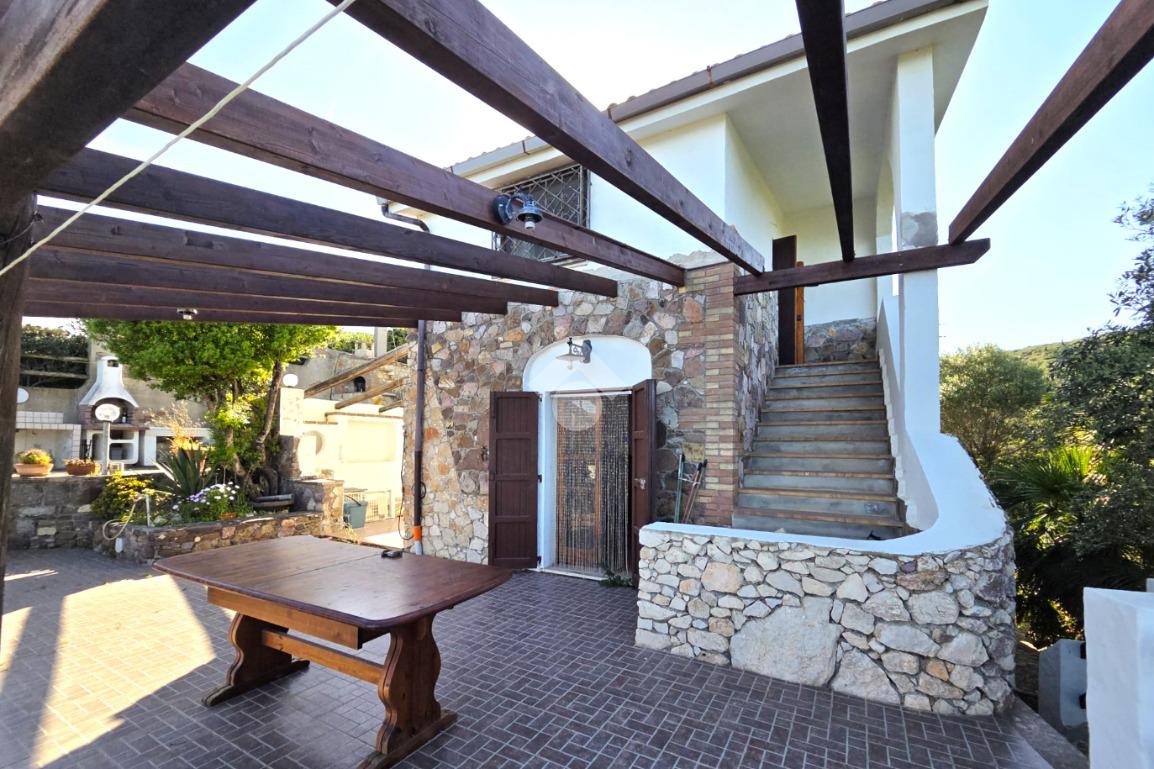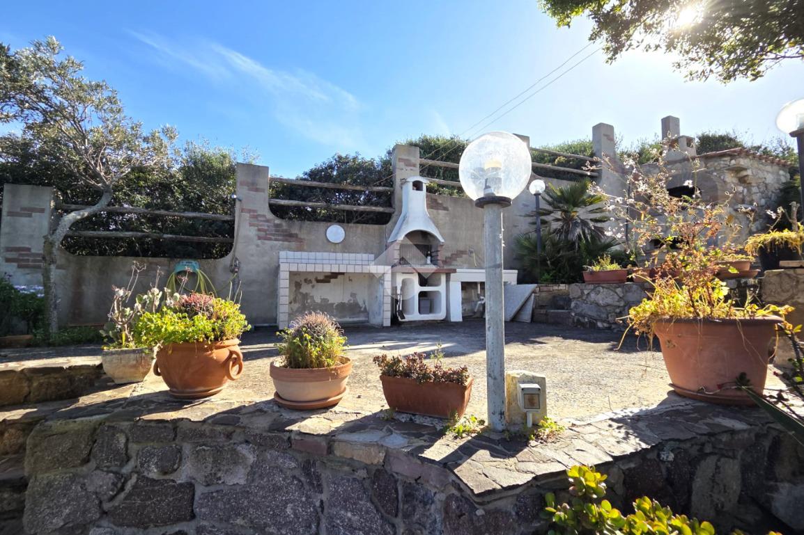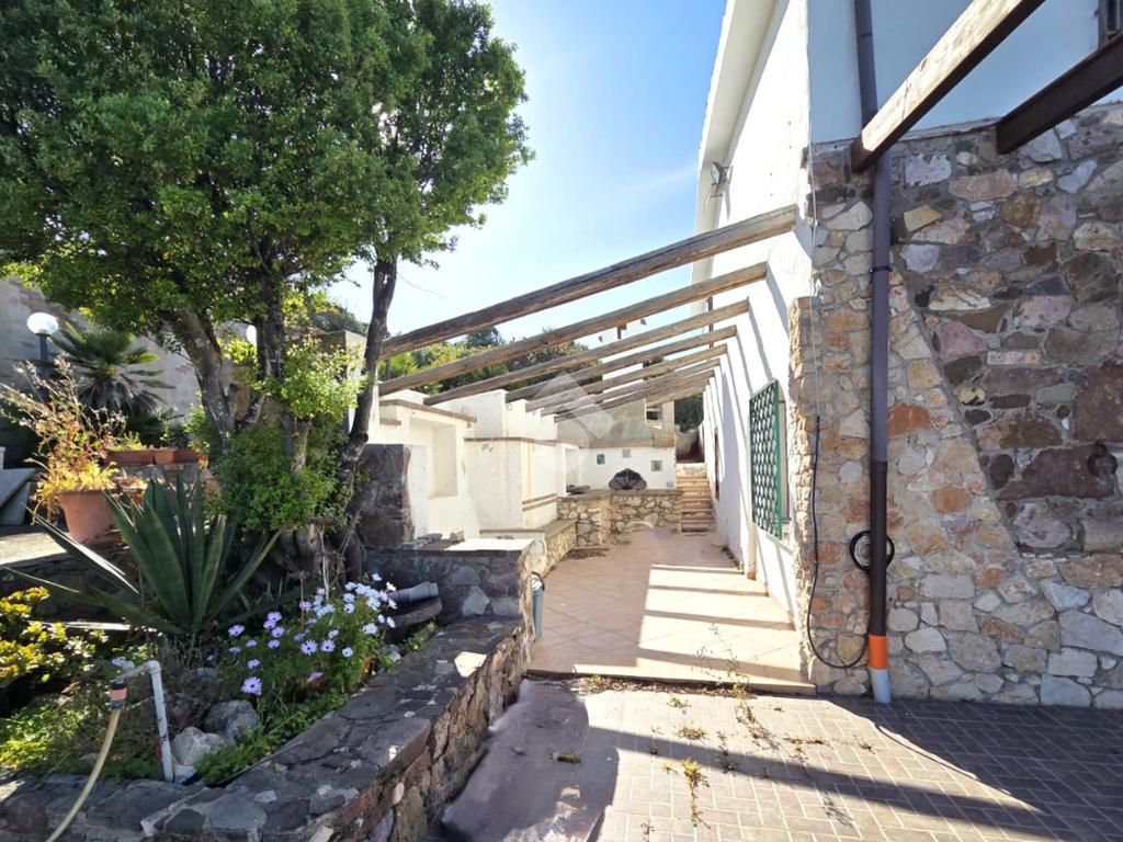 La proprietà sorge in un lotto di terreno complessivo di circa 2350 mq, in una piccola parte pavimentato sulla zona d'ingresso subito dopo il cancello carrabile, e in maggior parte coperto da macchia mediterranea. Si sviluppa su due livelli e offre ambienti ben distribuiti e funzionali. La zona giorno, luminosa e accogliente, è valorizzata da un camino che rende l’atmosfera calda e rilassante in ogni stagione. La zona notte comprende due camere da letto, una della quali con fantastica vista mare, e due bagni, perfetti per garantire comodità e indipendenza.