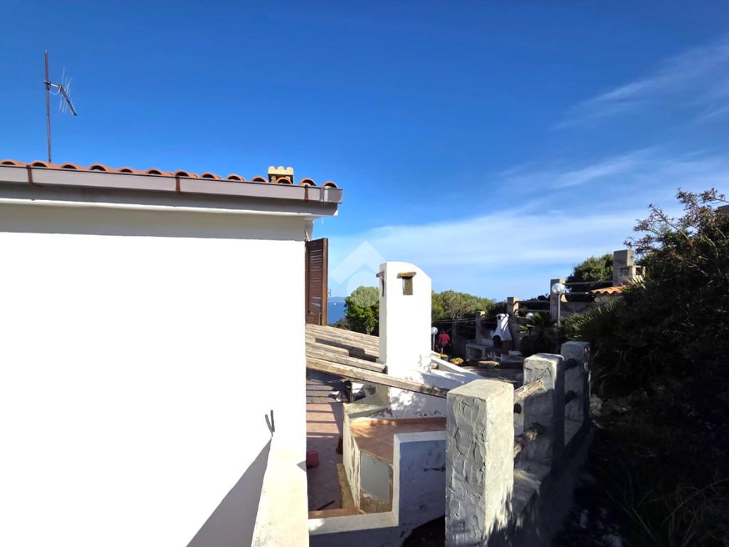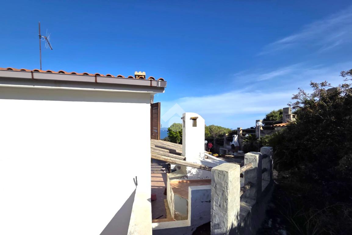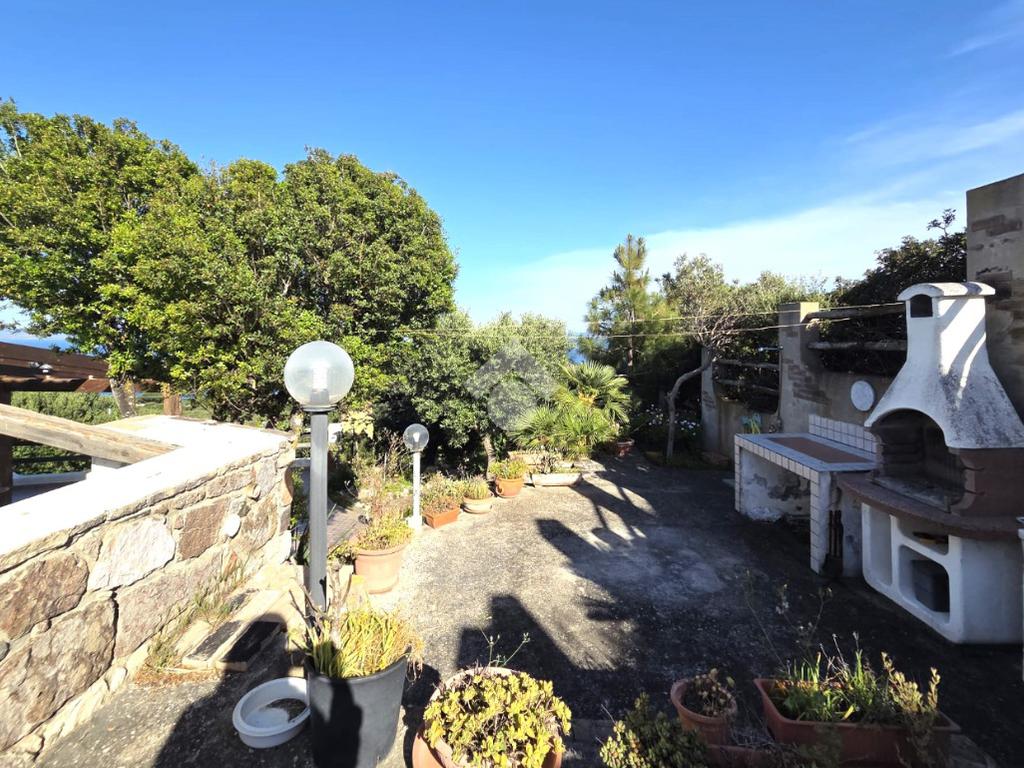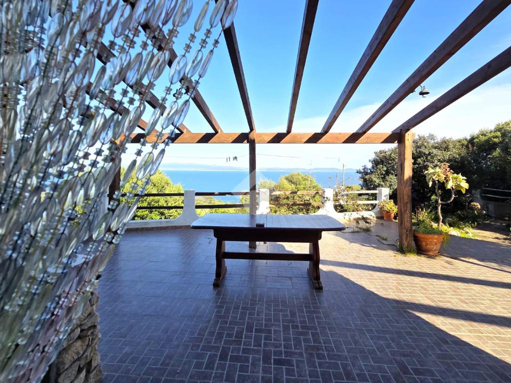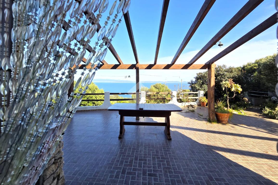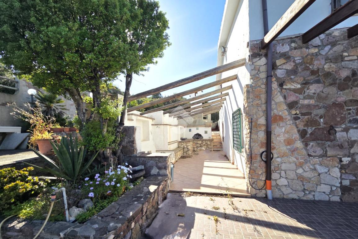 La proprietà sorge in un lotto di terreno complessivo di circa 2350 mq, in una piccola parte pavimentato sulla zona d'ingresso subito dopo il cancello carrabile, e in maggior parte coperto da macchia mediterranea. Si sviluppa su due livelli e offre ambienti ben distribuiti e funzionali. La zona giorno, luminosa e accogliente, è valorizzata da un camino che rende l’atmosfera calda e rilassante in ogni stagione. La zona notte comprende due camere da letto, una della quali con fantastica vista mare, e due bagni, perfetti per garantire comodità e indipendenza.