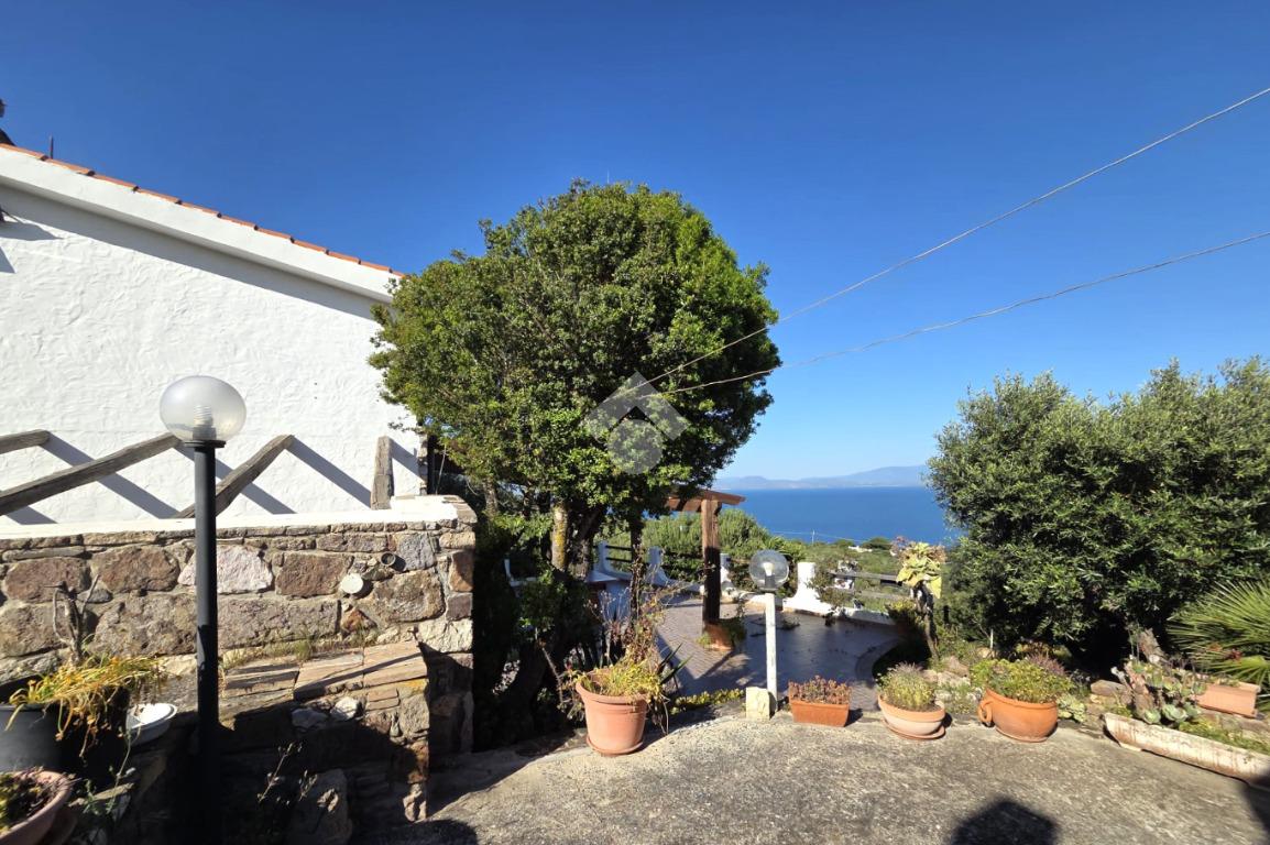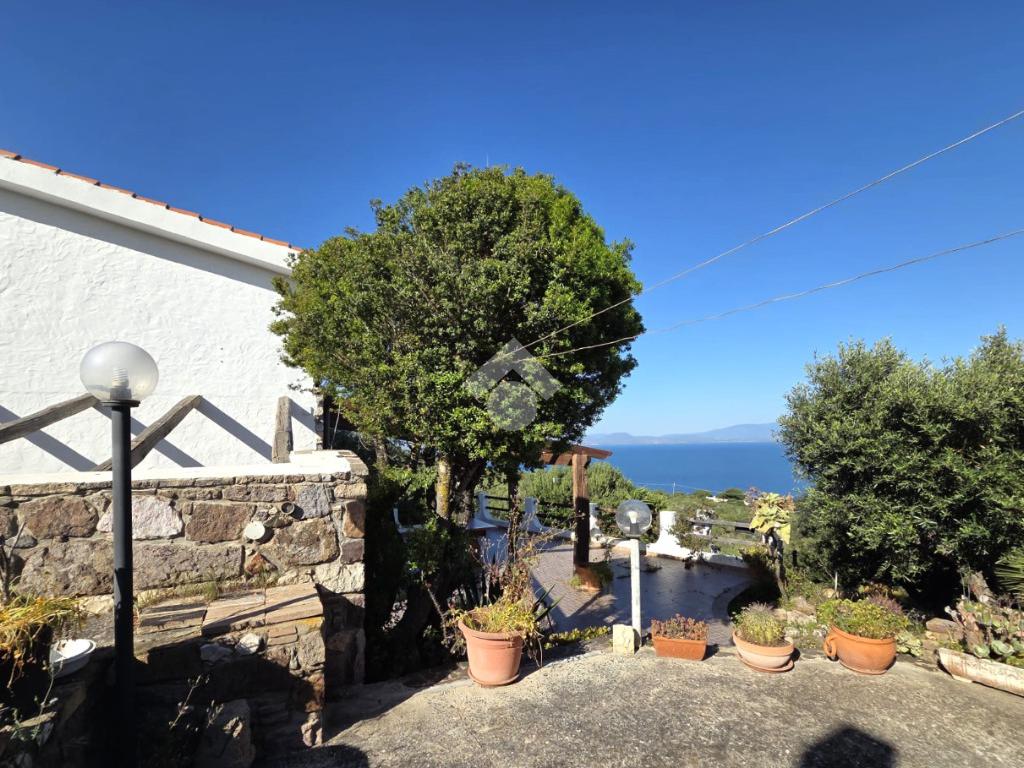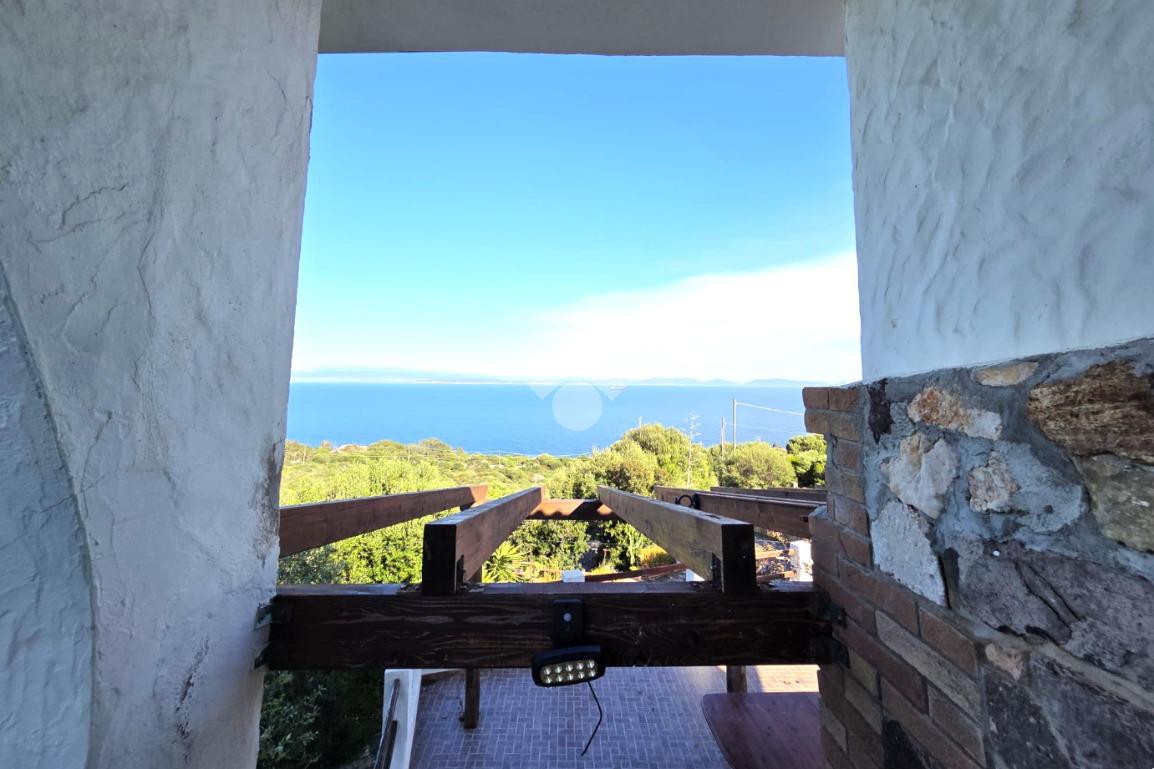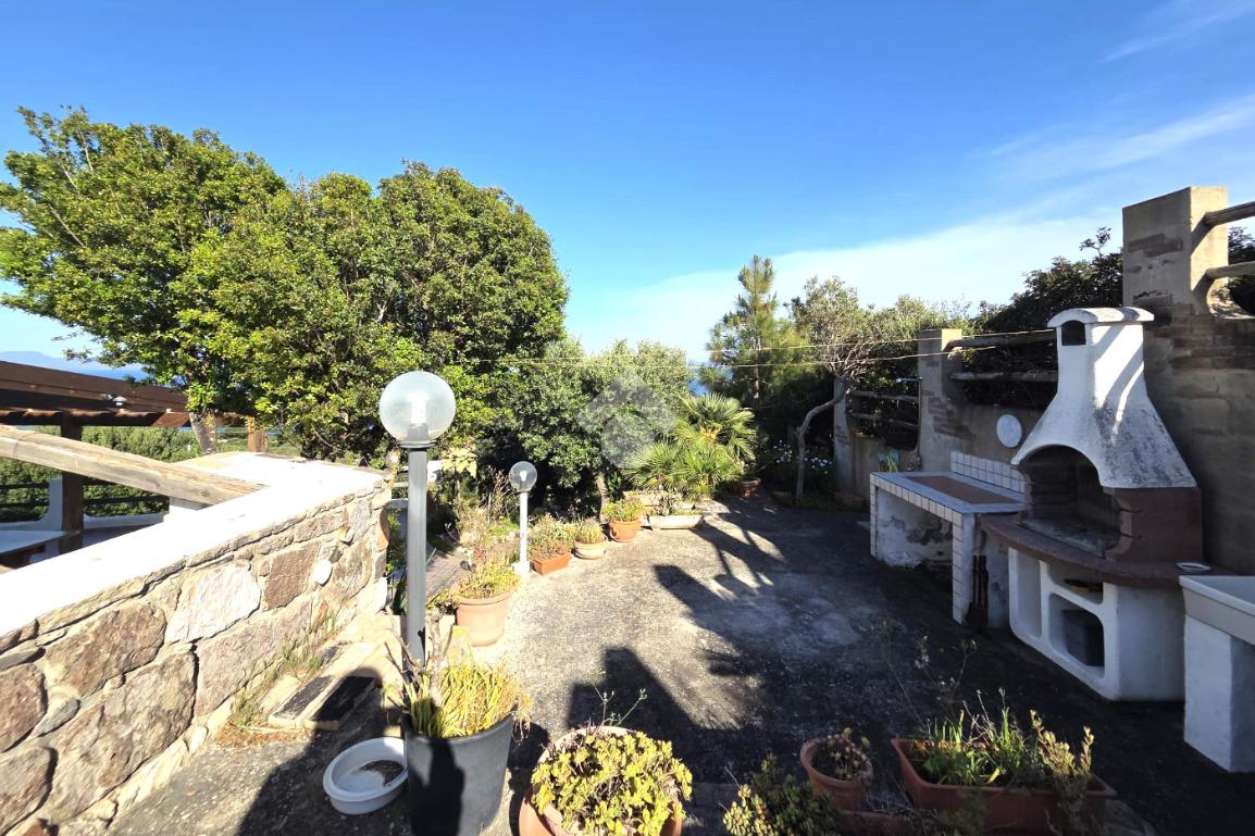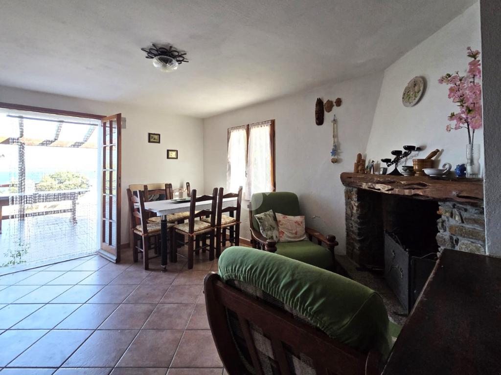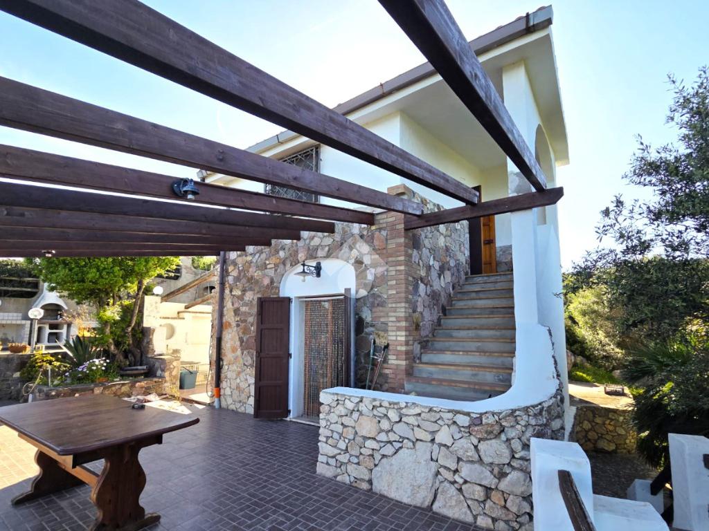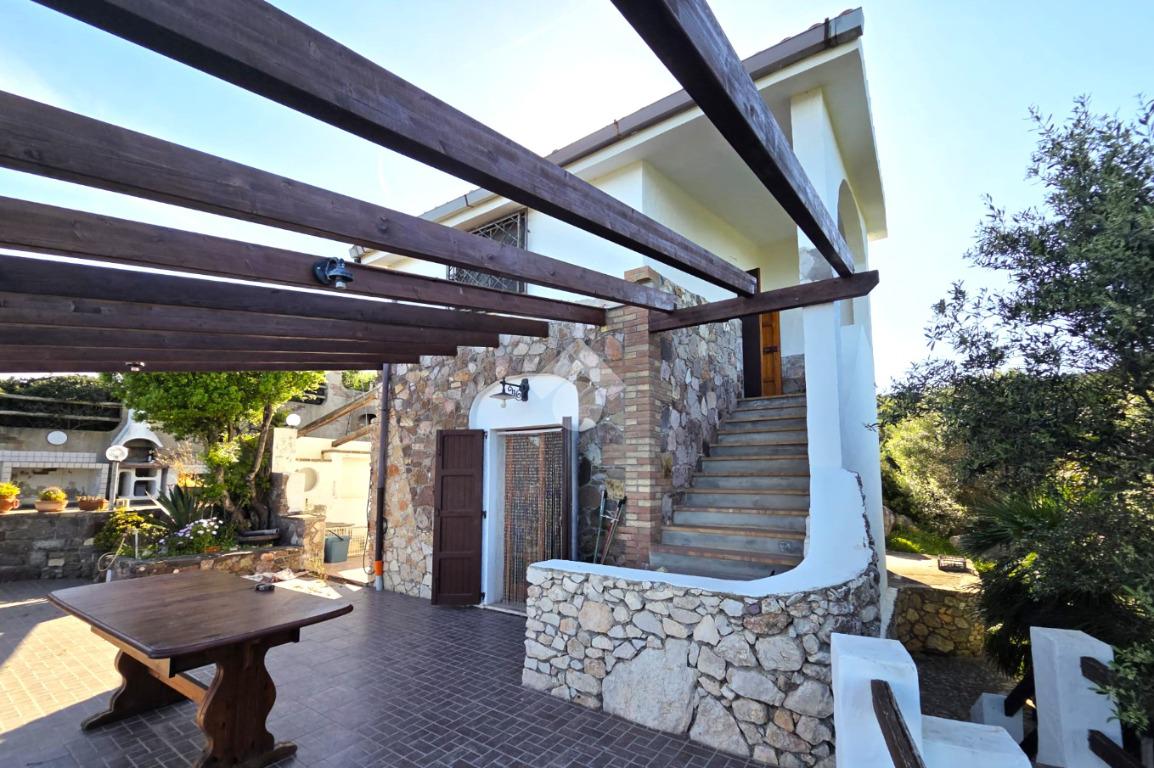 La proprietà sorge in un lotto di terreno complessivo di circa 2350 mq, in una piccola parte pavimentato sulla zona d'ingresso subito dopo il cancello carrabile, e in maggior parte coperto da macchia mediterranea. Si sviluppa su due livelli e offre ambienti ben distribuiti e funzionali. La zona giorno, luminosa e accogliente, è valorizzata da un camino che rende l’atmosfera calda e rilassante in ogni stagione. La zona notte comprende due camere da letto, una della quali con fantastica vista mare, e due bagni, perfetti per garantire comodità e indipendenza.