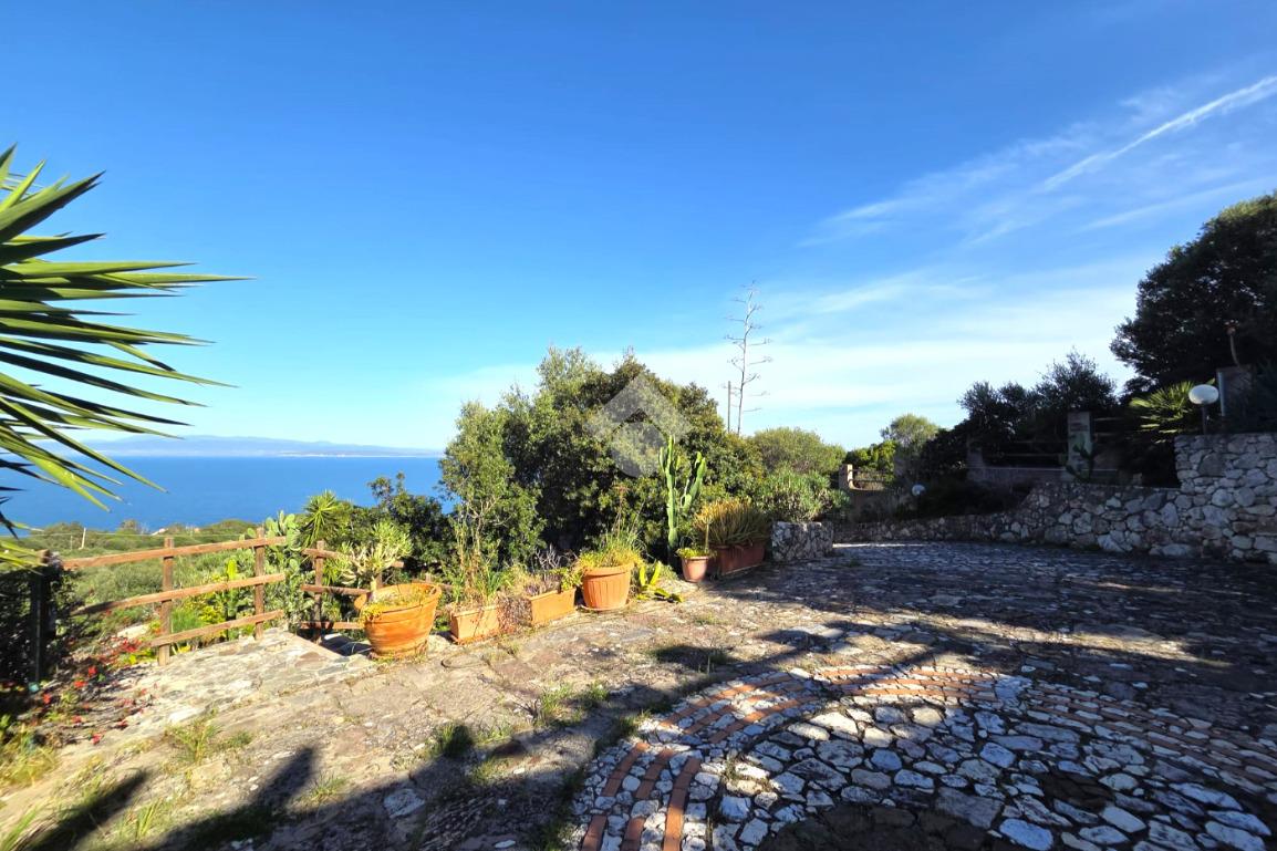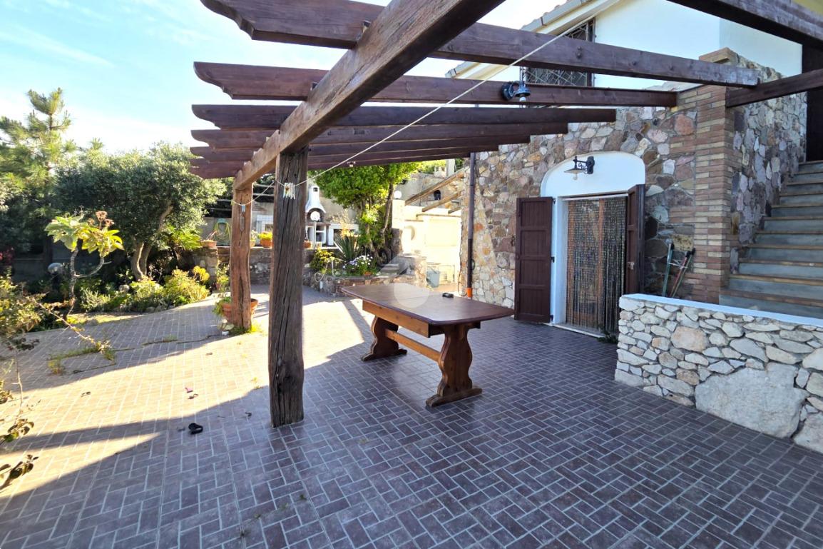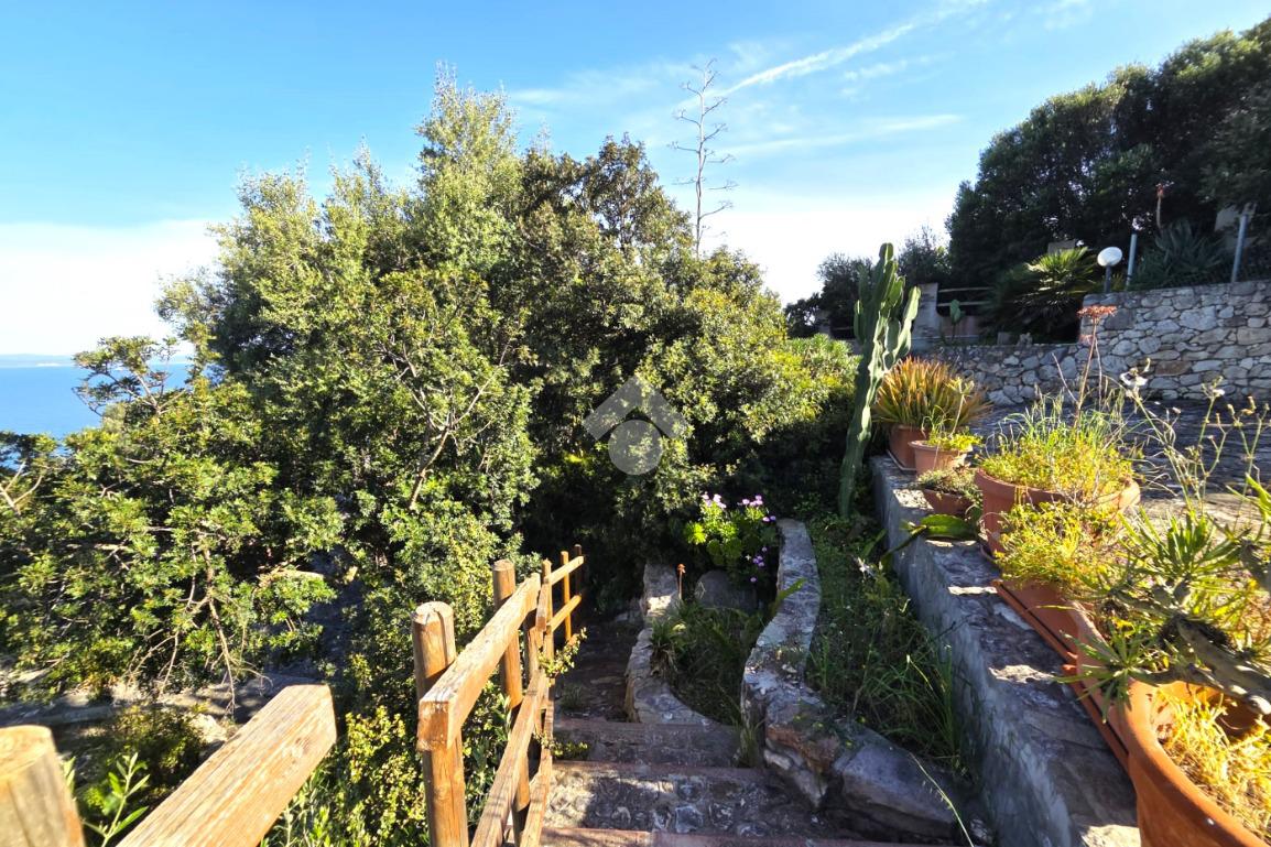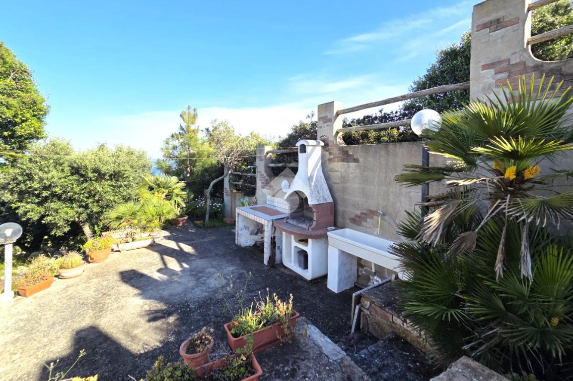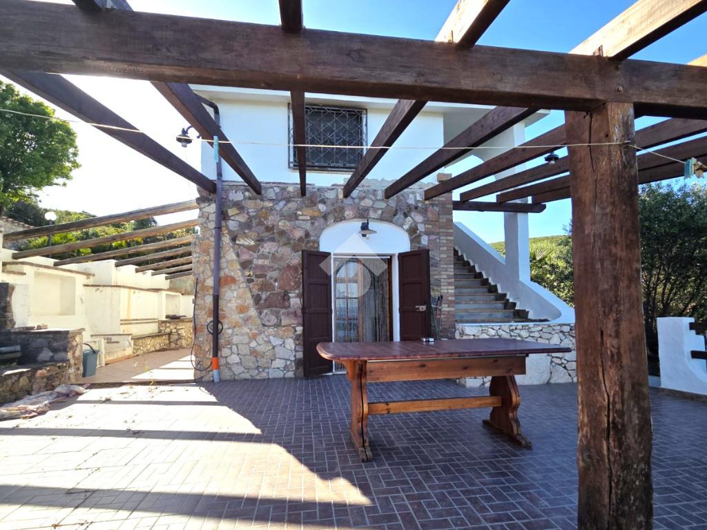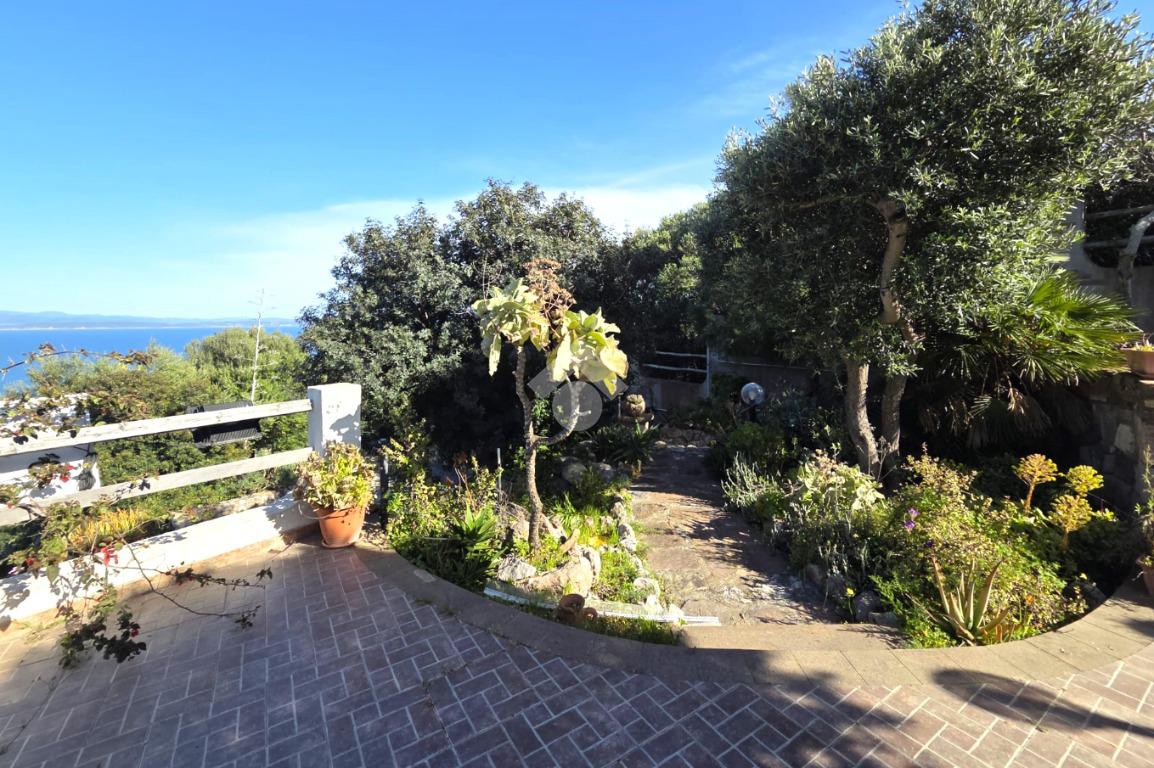 La proprietà sorge in un lotto di terreno complessivo di circa 2350 mq, in una piccola parte pavimentato sulla zona d'ingresso subito dopo il cancello carrabile, e in maggior parte coperto da macchia mediterranea. Si sviluppa su due livelli e offre ambienti ben distribuiti e funzionali. La zona giorno, luminosa e accogliente, è valorizzata da un camino che rende l’atmosfera calda e rilassante in ogni stagione. La zona notte comprende due camere da letto, una della quali con fantastica vista mare, e due bagni, perfetti per garantire comodità e indipendenza.