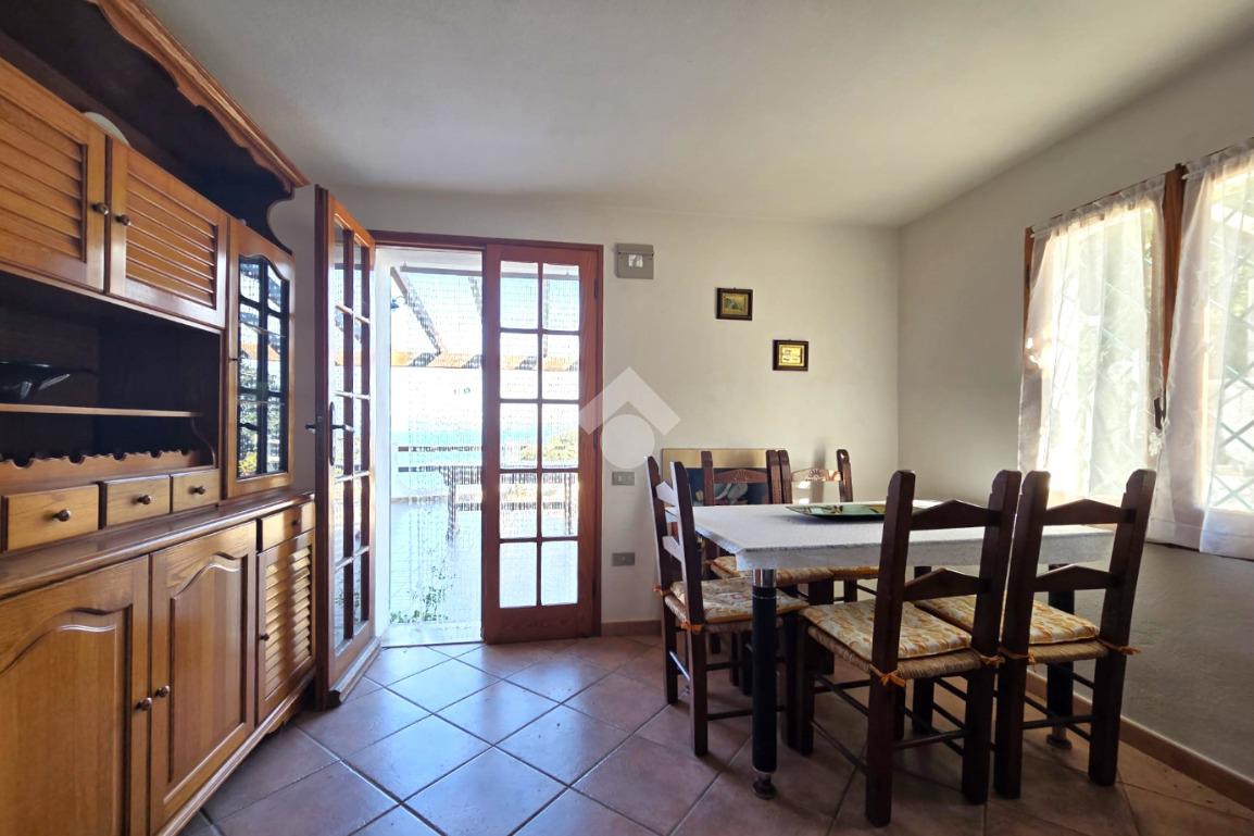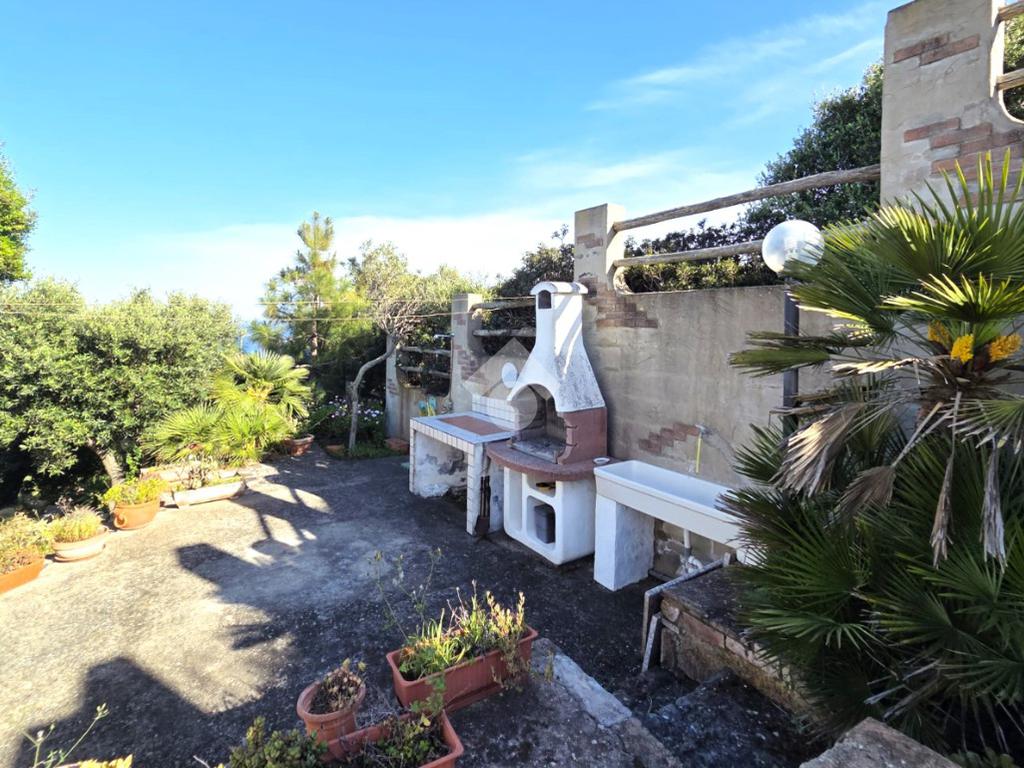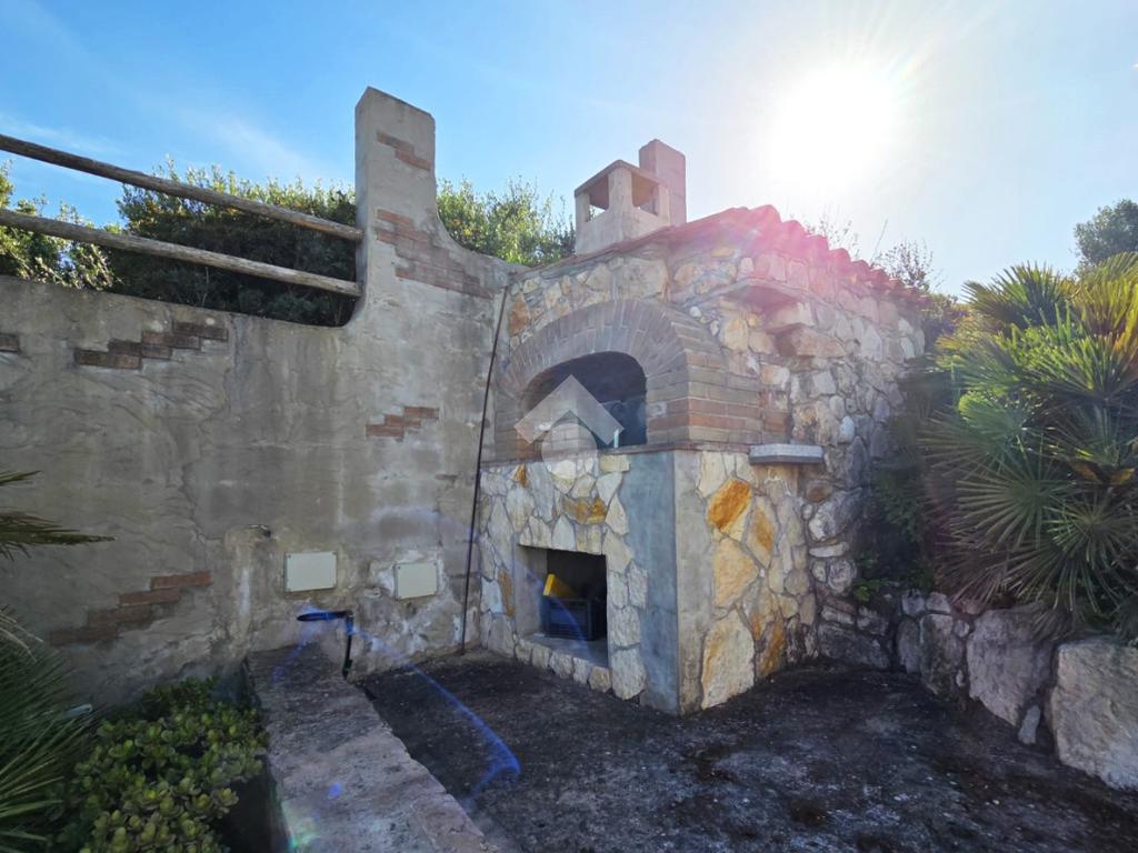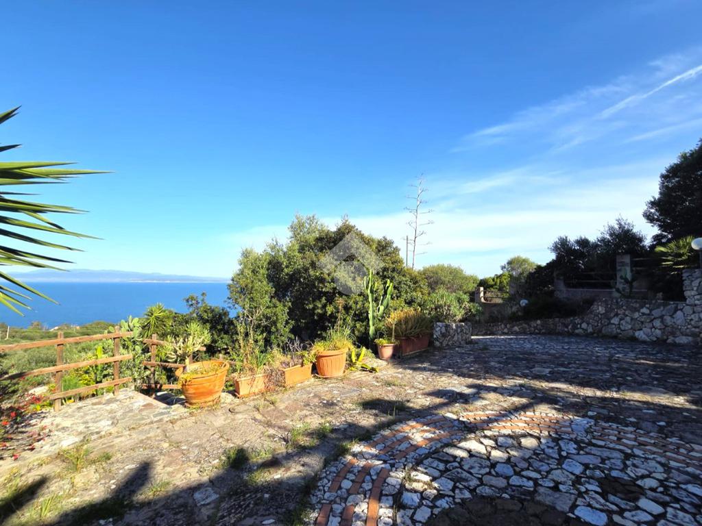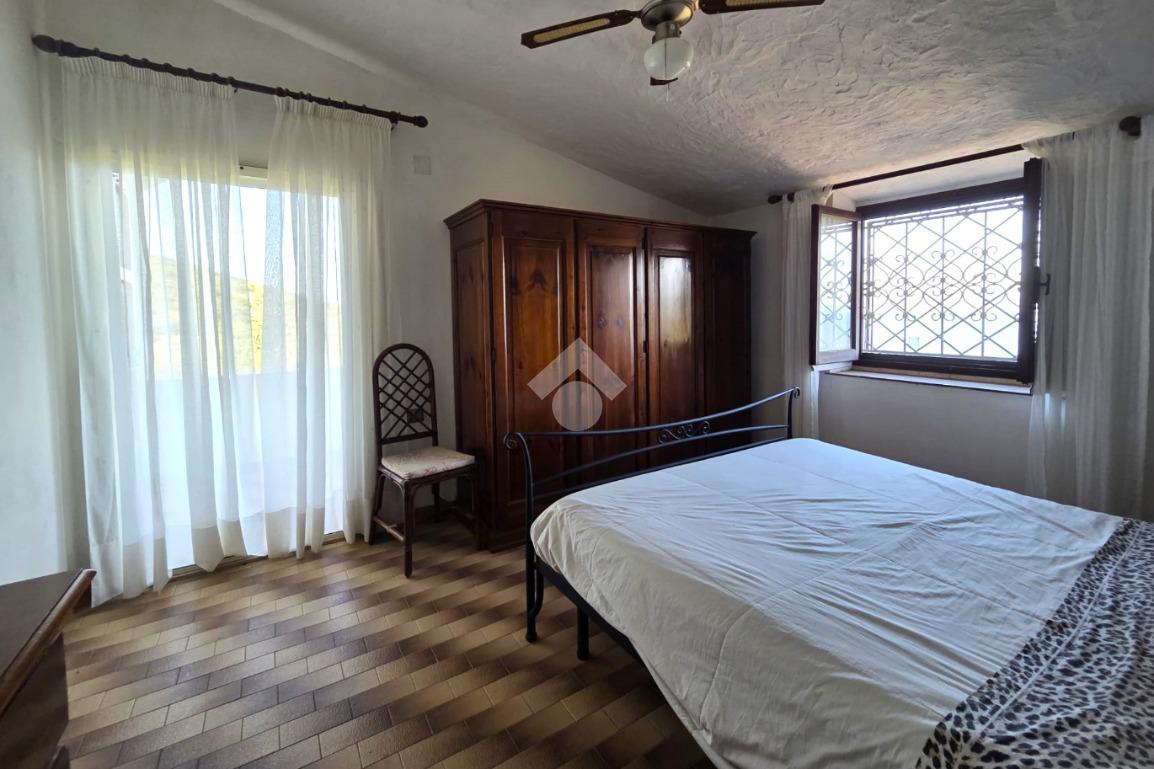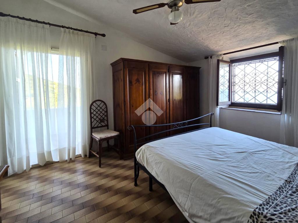 La proprietà sorge in un lotto di terreno complessivo di circa 2350 mq, in una piccola parte pavimentato sulla zona d'ingresso subito dopo il cancello carrabile, e in maggior parte coperto da macchia mediterranea. Si sviluppa su due livelli e offre ambienti ben distribuiti e funzionali. La zona giorno, luminosa e accogliente, è valorizzata da un camino che rende l’atmosfera calda e rilassante in ogni stagione. La zona notte comprende due camere da letto, una della quali con fantastica vista mare, e due bagni, perfetti per garantire comodità e indipendenza.